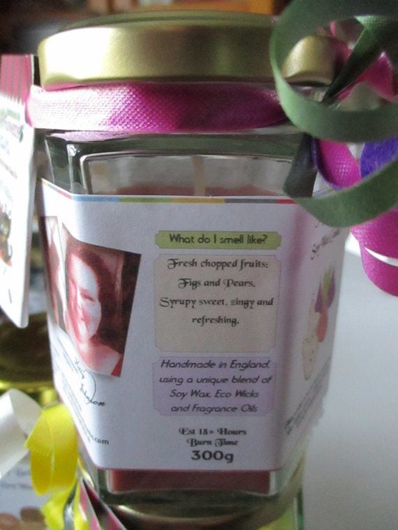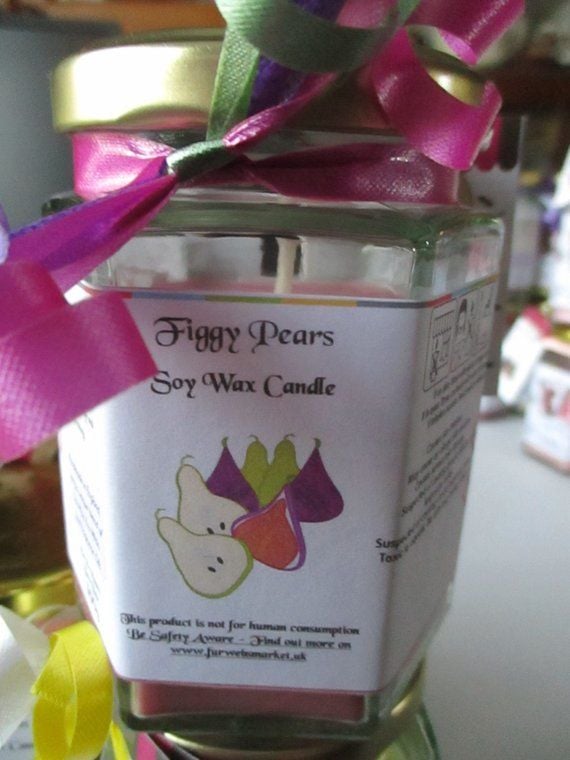 A single Figgy Pears Scented Soy Wax Candle